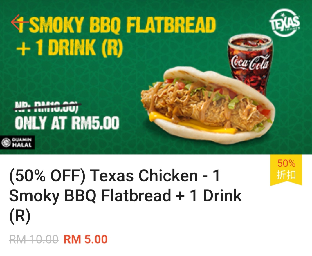 喜欢吃 Texas 的朋友,这里有项优惠要告诉你!大马 Texas 推出50%超值大优惠!烟熏烤鸡饼皮套餐只需RM5!3块巧克力曲奇饼只需RM2.85!