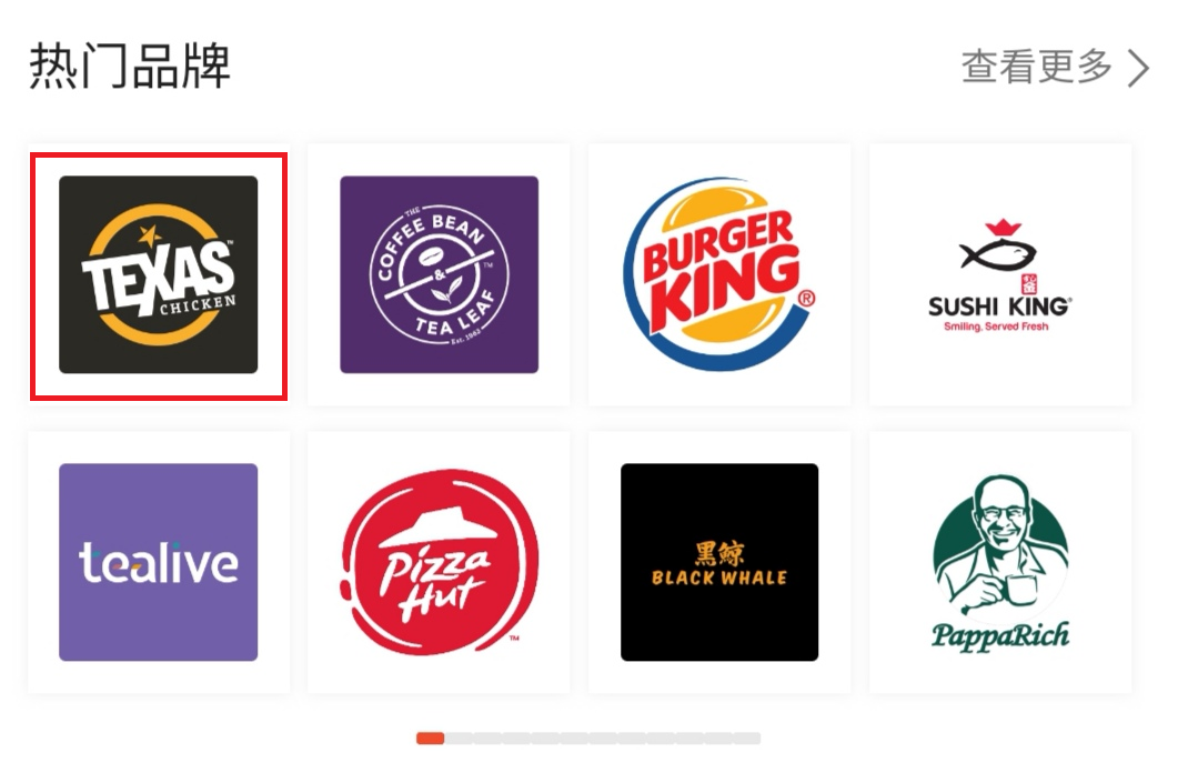 步骤2:点击「Texas Chicken」的Logo,就会显示以下优惠券了!