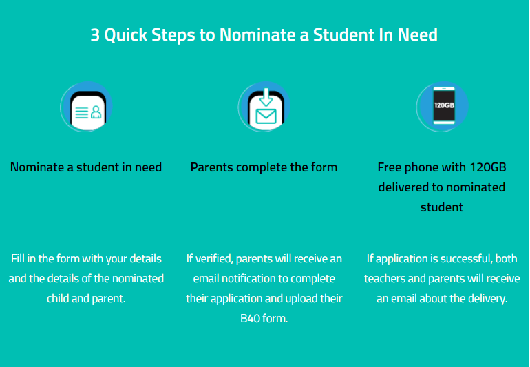 若老师发现学生没有手机无法在线上课的情况。老师可帮助学生申请免费手机。不过,只限 B40 低收入群体家庭的学生。