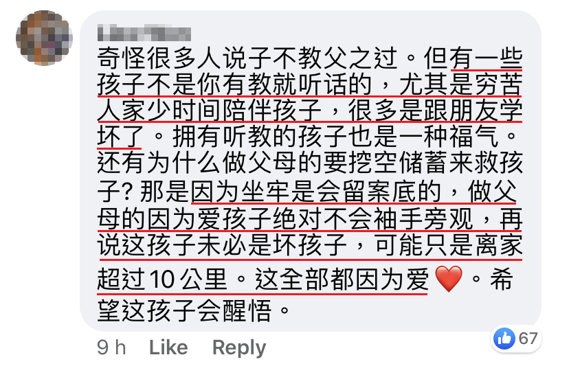 年轻人啊… 尤其是还未出社会工作赚钱、仍在求学中的青少年,拜托你们乖乖待在家里吧!不要为了一时的痛快,和朋友到处游荡,不要逞英雄骑着摩哆到处逛来逛去,你们这样的行为只会连累到自己的父母。不要以为赚钱很容易!