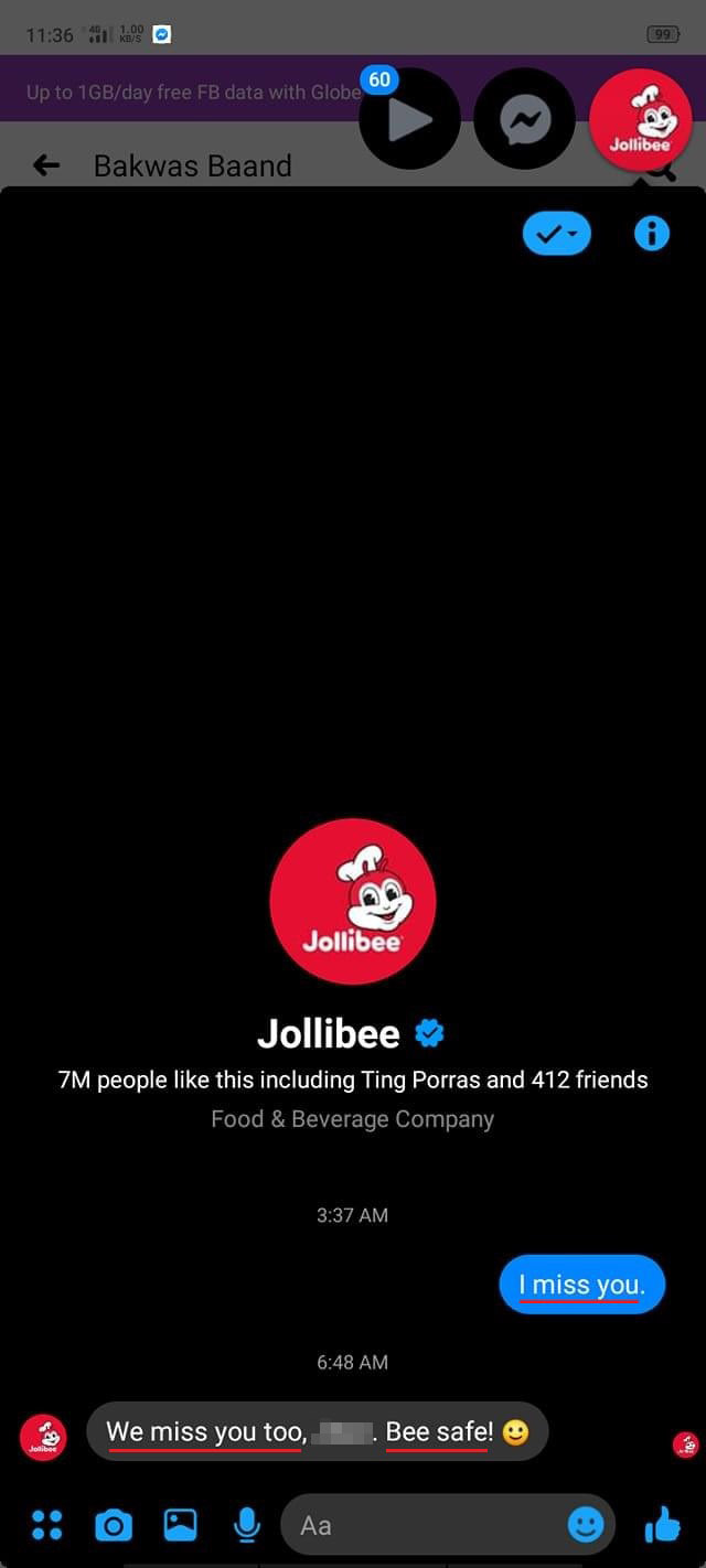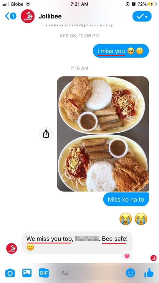 ▼ 另一名网友也尝试了和 Jollibee 对话,结果也获得了相同的温暖回应!