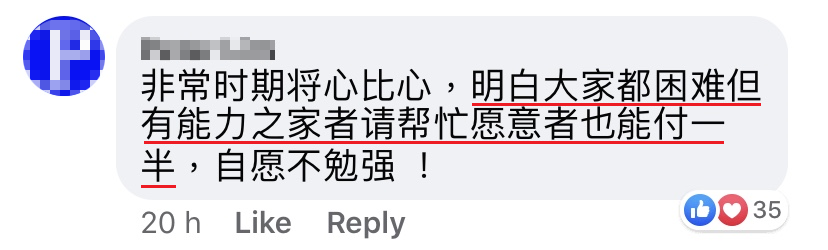不过另一方的家长则认为在这非常时期应该将心比心,共同承担这笔费用,互相体谅以共度难关。