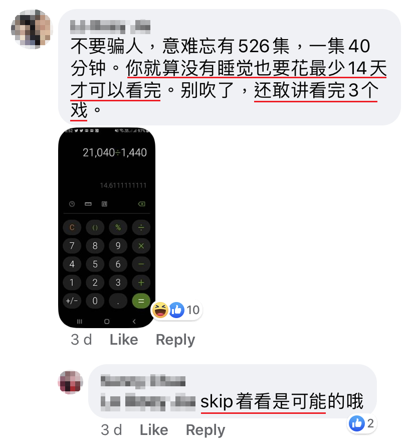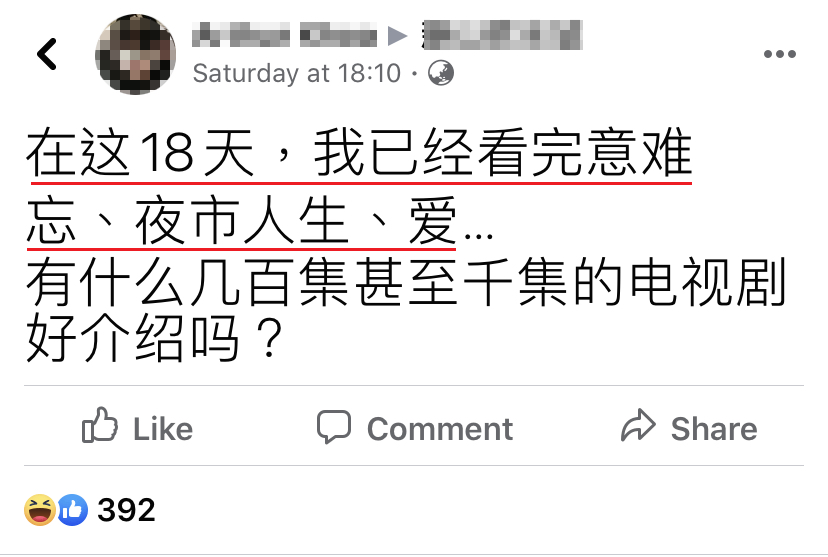 近日一名大马网友在面子书发文,他在行管令的第18天就看完了3部超经典的「长寿剧」!