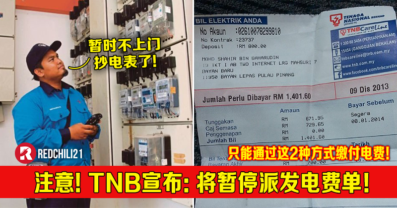 同时需要注意的是:大马TNB将暂时不上门抄写电表及派发电费单!