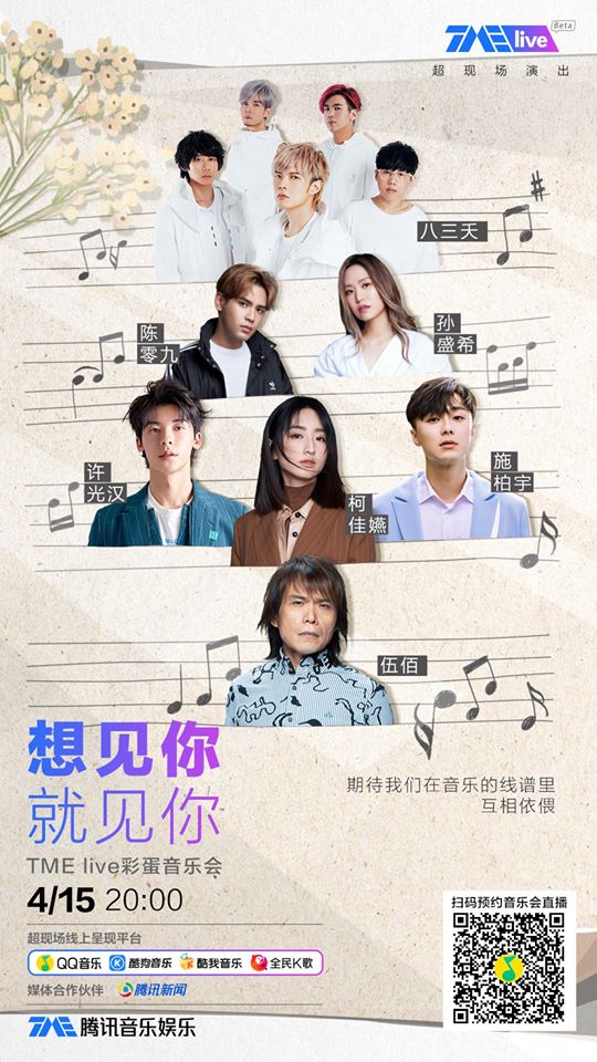 你可通过QQ音乐、酷狗音乐、酷我音乐及全民K歌平台观赏此音乐会!