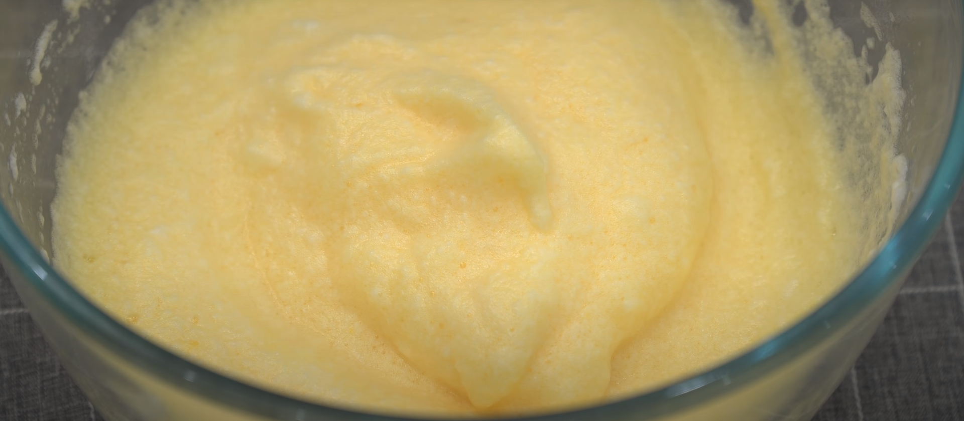 步骤4:将刚刚备好的蛋黄加入蛋白里,再次把蛋黄和蛋白搅拌至均匀
