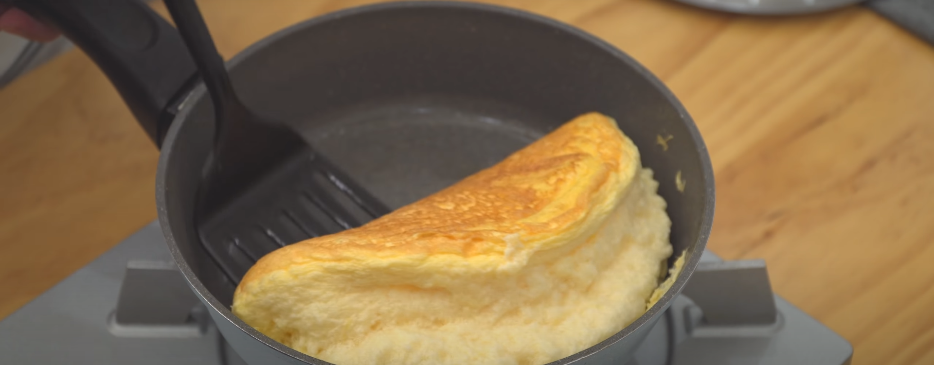 此外,这款【1000次欧姆蛋】也被称为舒芙蕾欧姆蛋(Souffle Omelette),口感就像舒芙蕾般绵密,像是在吃奶油一样哦!而且它的做法非常简单,只需3种材料就能做出来了!