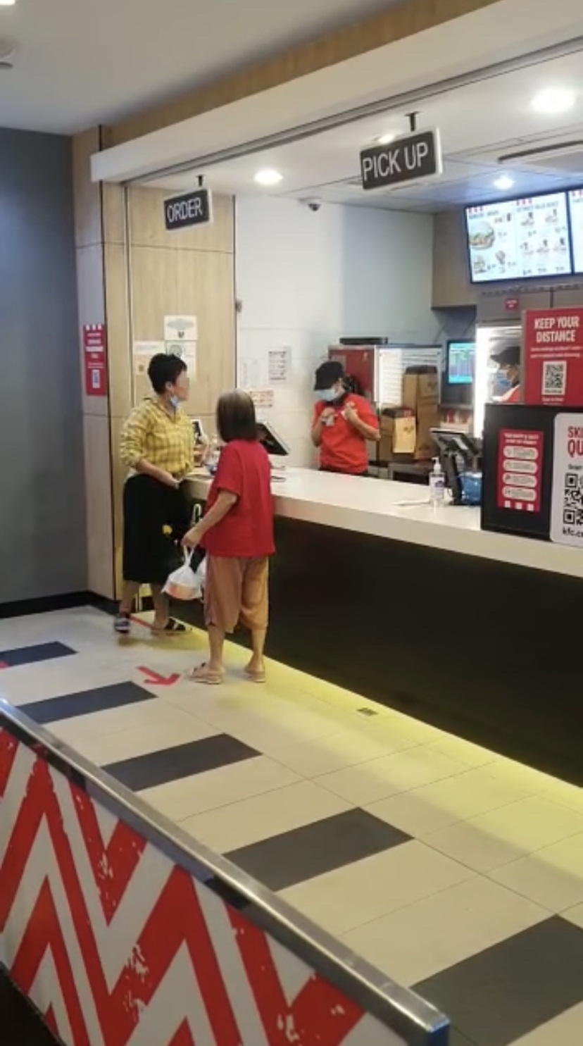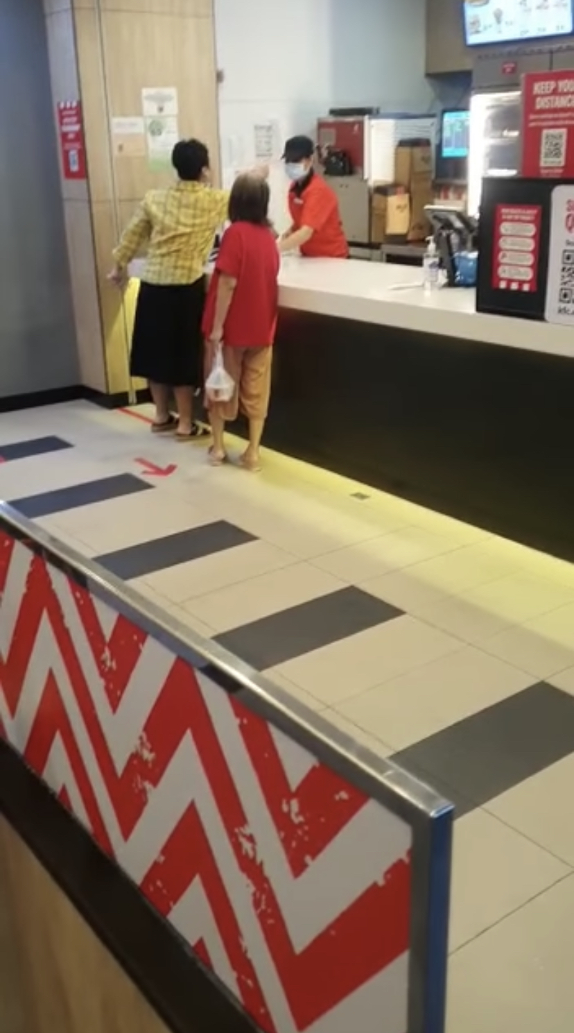 ▼ 该店员虽然被顾客咒骂,甚至被溅到了口水,但她全程都只是站在柜台前面被她咒骂,然后低头忙工作,没有对 Aunty 发火,一声都不吭!