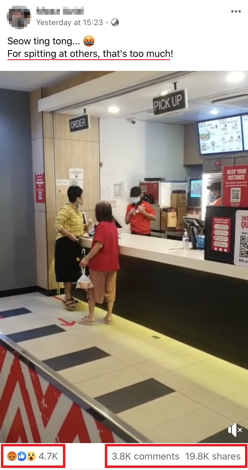 昨天(4月22日)社交媒体疯传一段视频,不到1天就将近2万人疯传!视频里,一名新加坡妇女在 KFC 分店购买餐点时,因为等待的时间太久竟然当场咒骂店员,甚至几度向着店员吐口水!