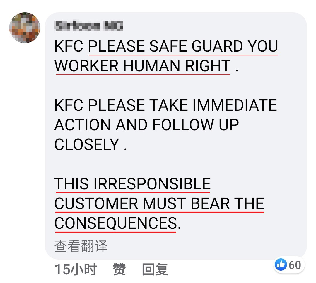 ▼ 网友们认为该 KFC 应该为员工讨回公道。