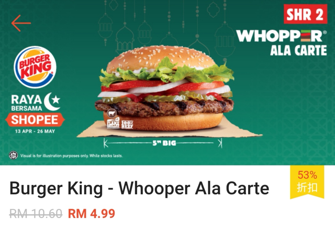 促销活动:Burger King 与 Shopee 联合推出超值优惠券