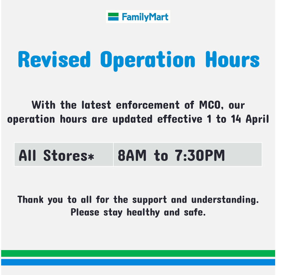 注意!如今大马所有 Family Mart 分行的营业时间从 8am 至 7:30pm !直到4月14日!