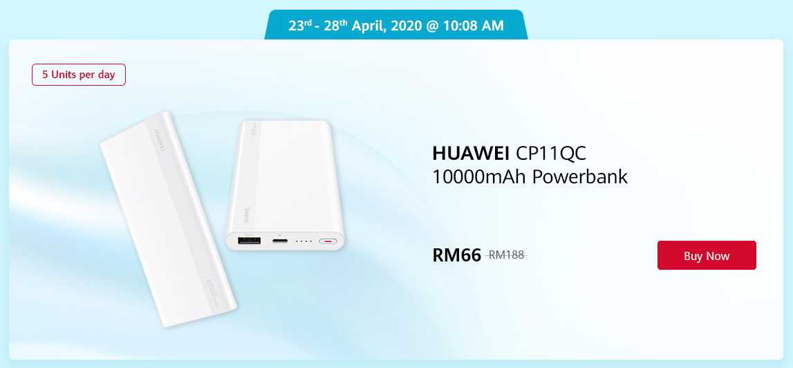 ▼ 此外,Huawei官方网还推出限时优惠!Huawei CP11QC 10000mAh 移动电源只需RM66!(原价RM188)!需要注意的是:这可是限量抢购!