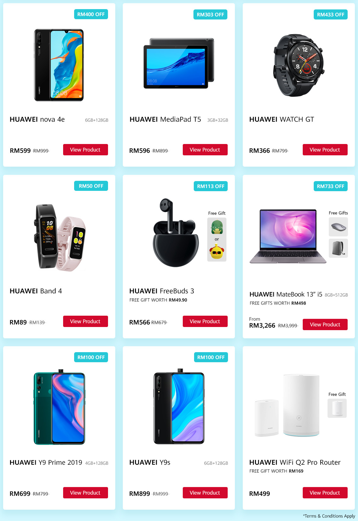 这项优惠从即日起至4月29日,在Huawei 官方网站推出限时大优惠!促销的商品中有智慧型手机、智能手表、平板电脑及 Power Bank 统统都享有优惠折扣!