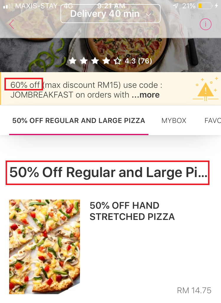 ⑤ 特别介绍-早餐时段订购Pizza Hut 还能得到60%+ 50% 折扣优惠哦!