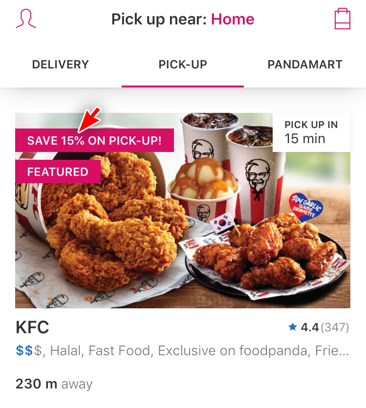 你只需使用foodpanda 来订餐就可获得高达60%折扣优惠!然后加上自取 (Pick-Up) 额外再获得15%的折扣!