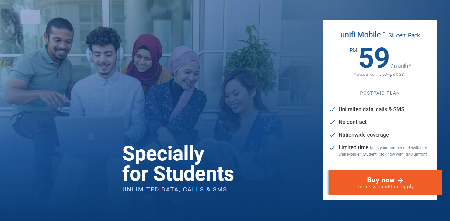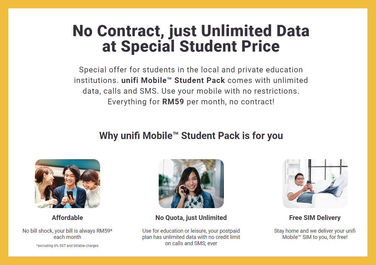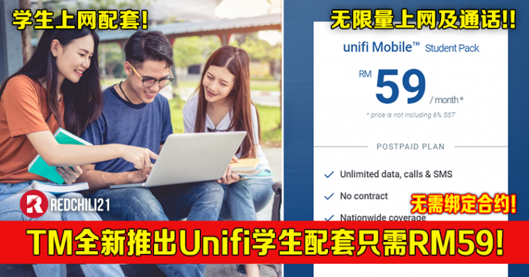 学生们,注意了!大马电讯 TM 旗下推出 Unifi Mobile 学生配套(Student Pack)只需RM59!而且是无限量上网及通话!