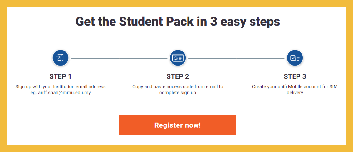 步骤1: 游览 Unifi Student Pack 官方网【点击这里】,点击 【Register Now】
