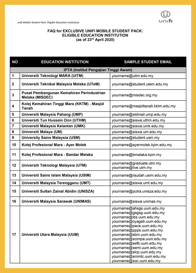 这项配套专为学生而推出 Unifi Mobile Student Pack 上网配套!无限量上网、通话及短信!最重要的是,无需绑定合约!