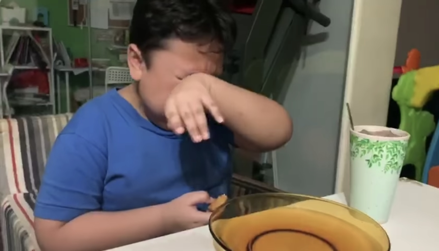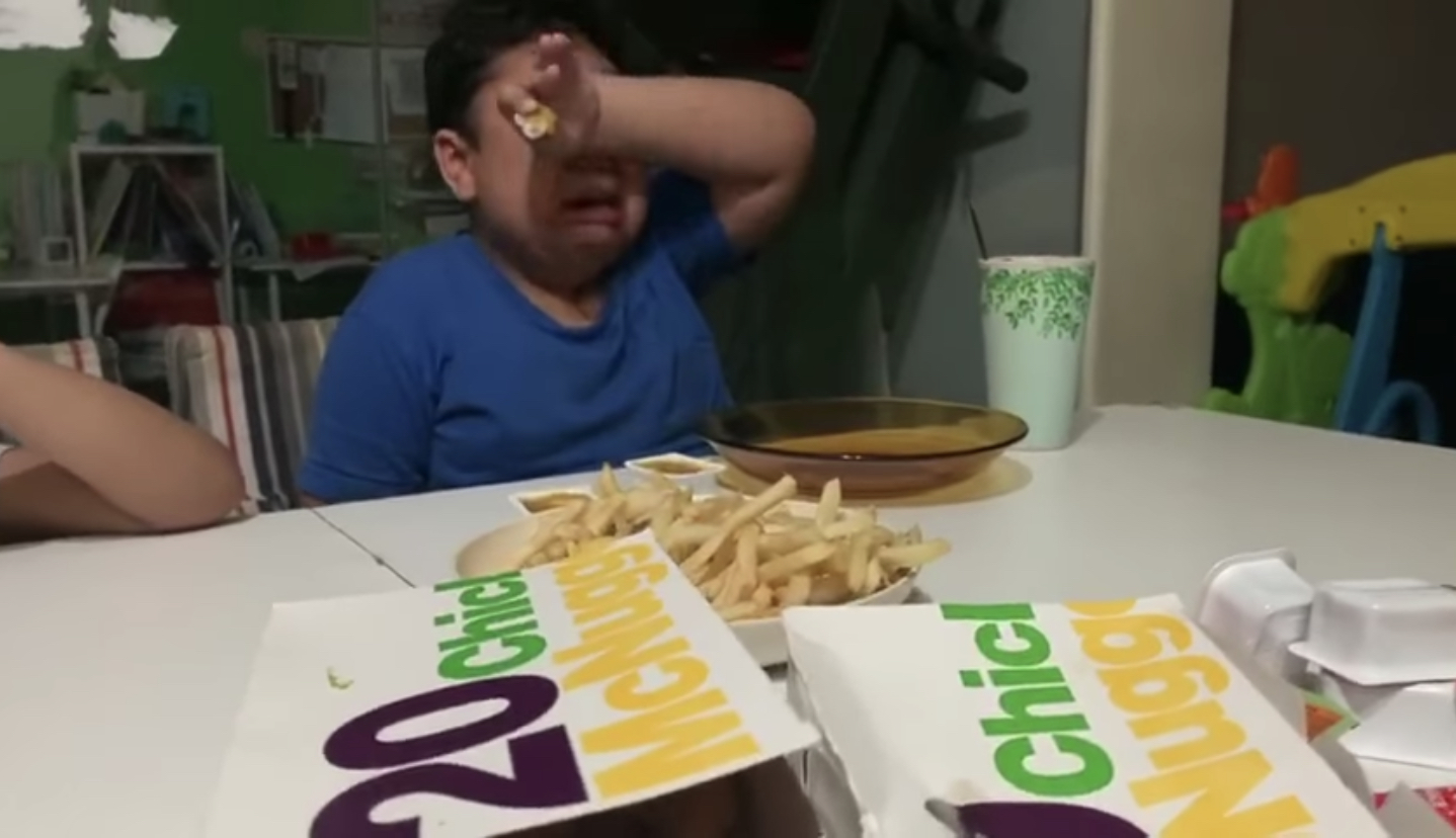 ▼ Adam 一边哭一边吃着心爱的麦当劳 McNugget 和薯条。