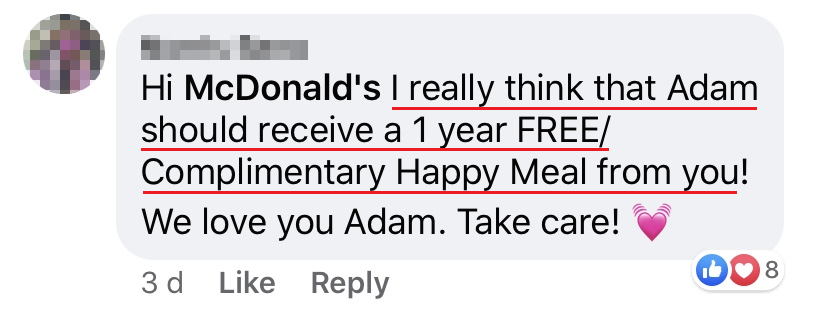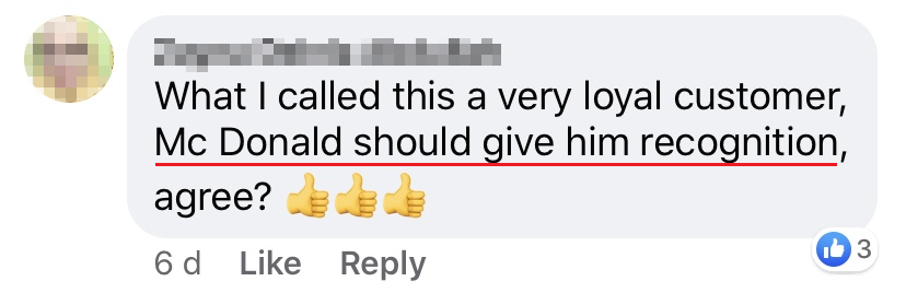 ▼ 不少网友留言表示对于这么忠实的粉丝,麦当劳应该给予一些回馈!