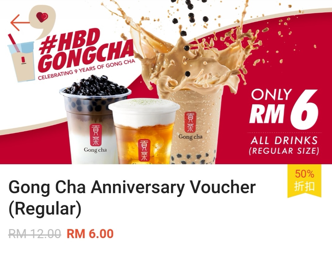 ▼ ① Gong Cha Anniversary Voucher(Regular)—— 只需RM6(原价RM12)