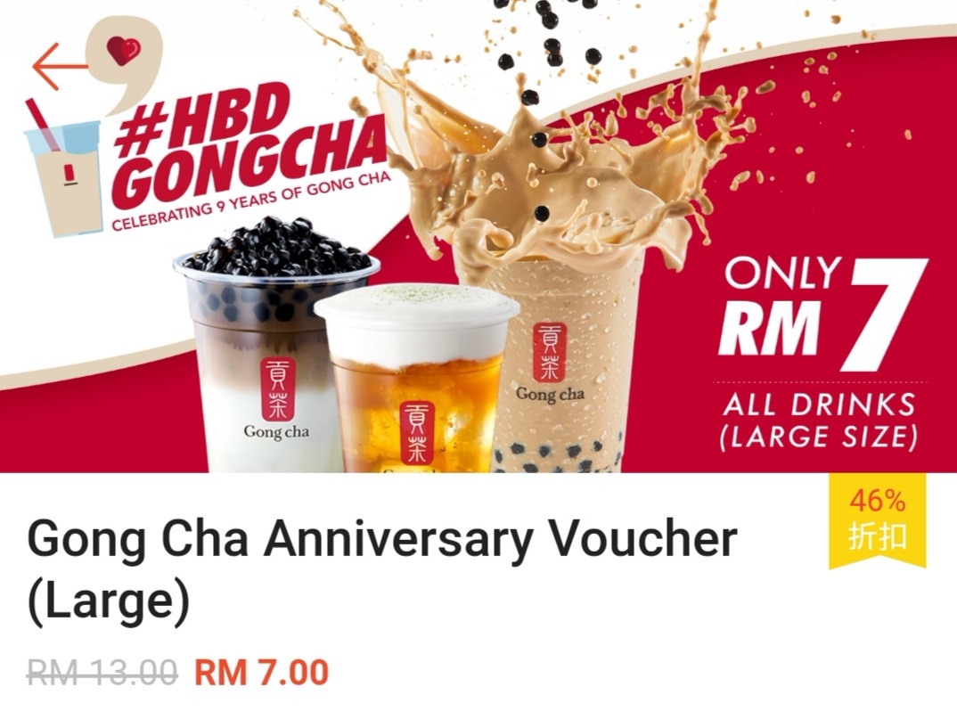 ▼ ② Gong Cha Anniversary Voucher(Large)—— 只需RM7(原价RM13)