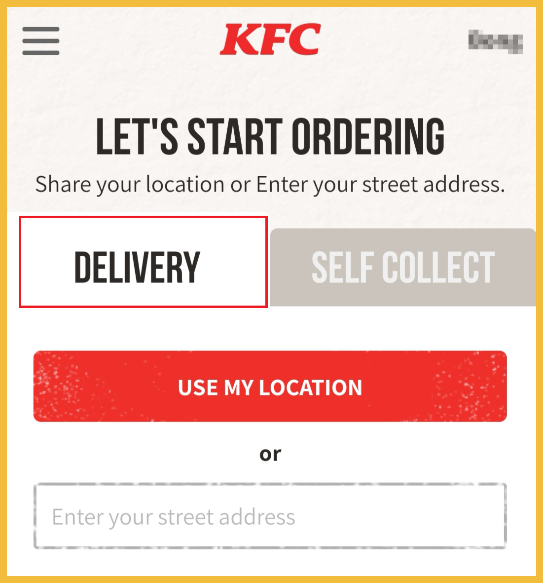 ▼ 步骤 1:登入 KFC 官网或打开手机里的 KFC App,并选择Delivery服务。