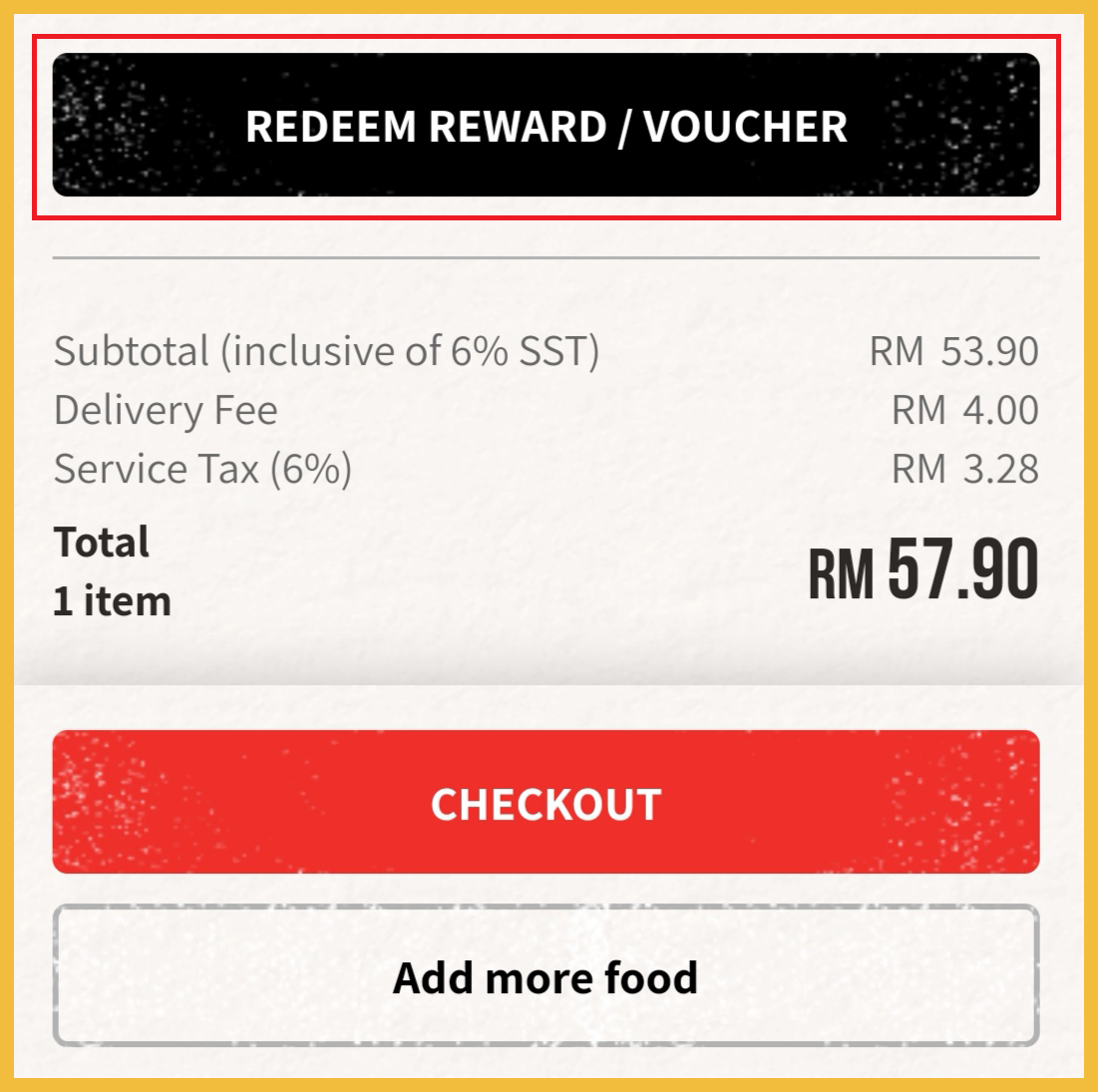 - 此优惠需要消费 RM25 或以上才能获得折扣(不包括RM4 外送服务费)