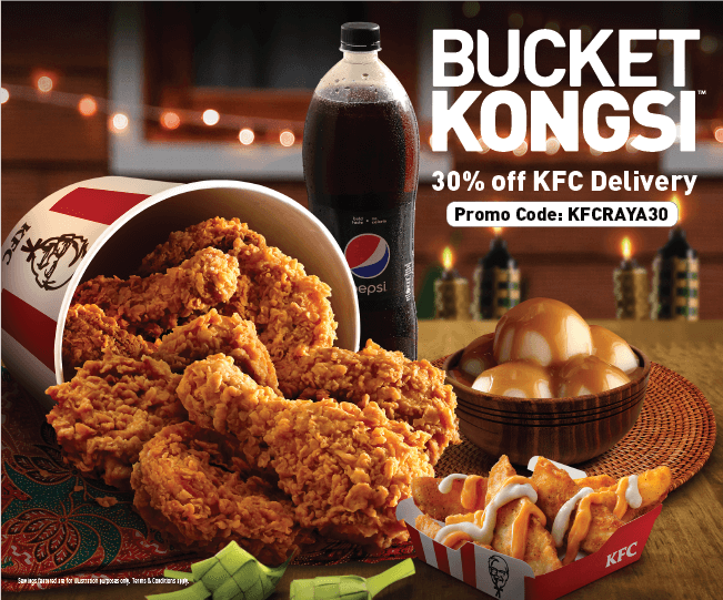 为了配合开斋节的到来~大马 KFC 推出「Bucket Kongsi」炸鸡套餐及特别折扣30%大优惠哦!