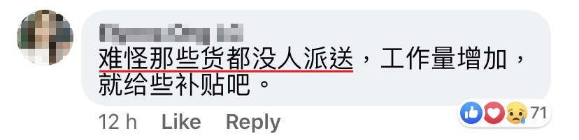 不要以新冠肺炎的疫情做为今年不分派花红的理由。如果不是因为这个疫情,就不会有翻倍的顾客量。我希望政府和相关单位能够为大马的邮差们发声,他们身为前线的英雄们,实在太辛苦了!