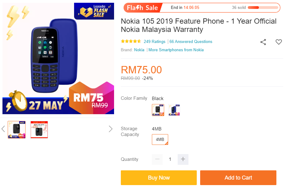 目前这款新版 Nokia 105 ,可在大马网购平台 Lazada 的 GADGET VILLAGE 官方网【点击这里】购买到哦!