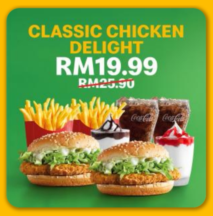 套餐中包括:2份McChicken 汉堡套餐 + 2杯Sundae(草莓/巧克力)