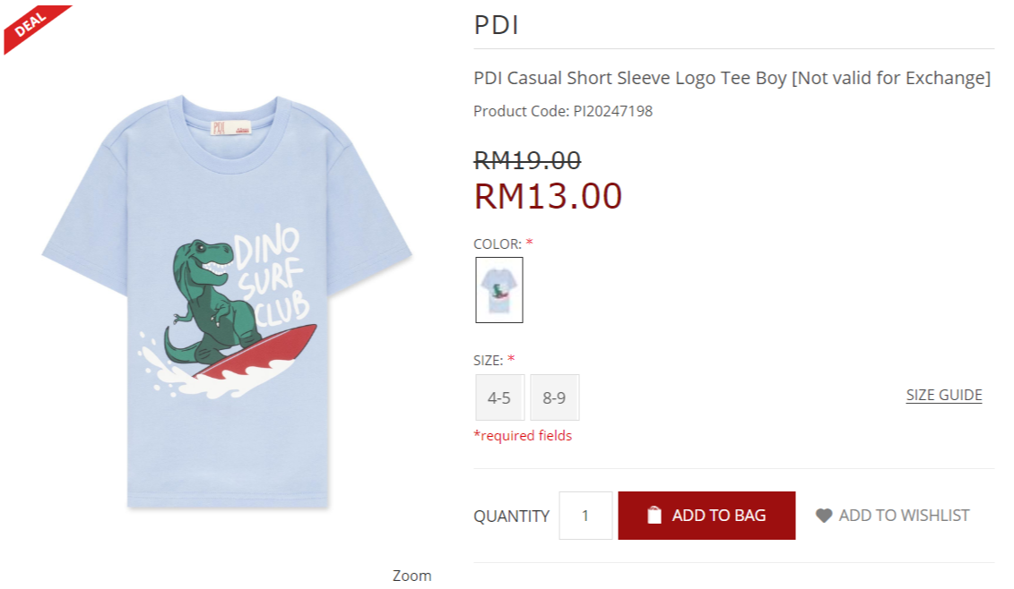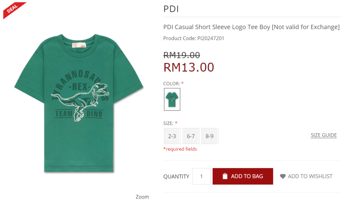 ▼ PDI Casual Short Sleeve Logo Tee Boy —— 只需RM13