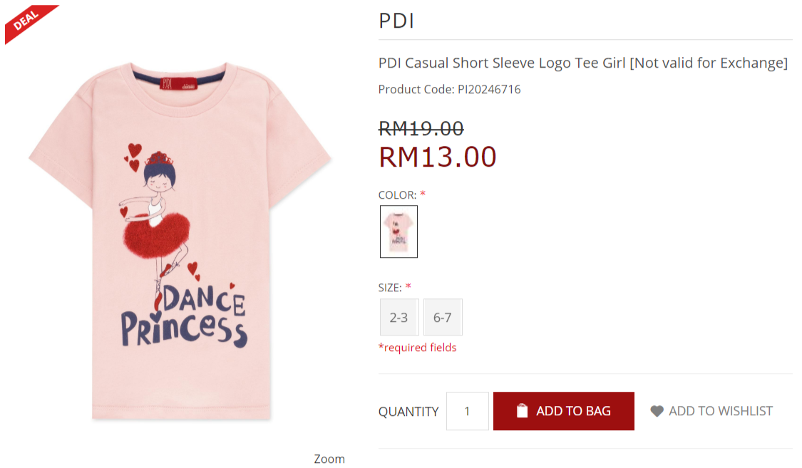 ▼ PDI Casual Short Sleeve Logo Tee Girl—— 只需RM13