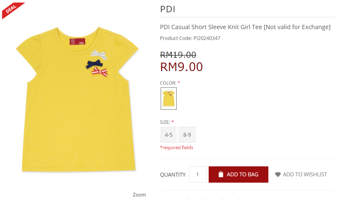 ▼ PDI Casual Short Sleeve Knit Girl Tee —— 只需RM9