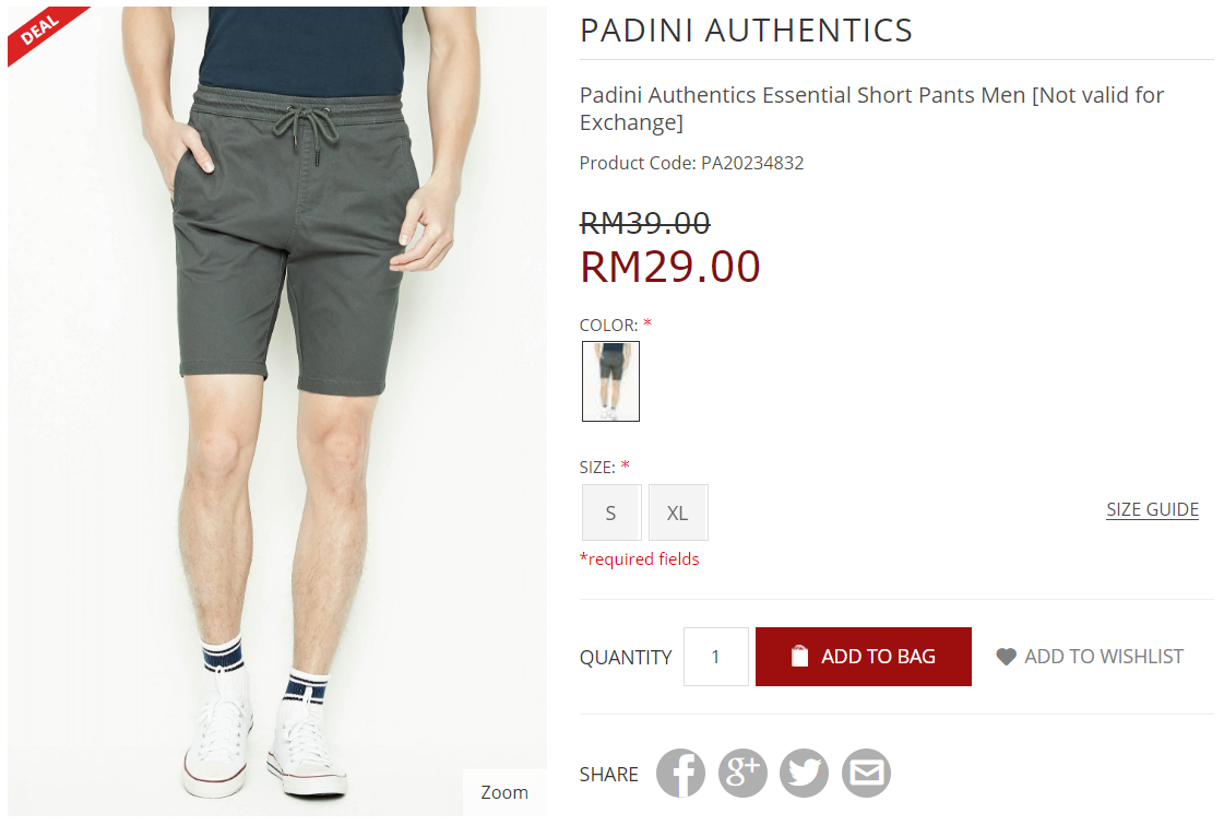 ▼ Padini Authentics Essential Short Pants Men —— 只需RM29