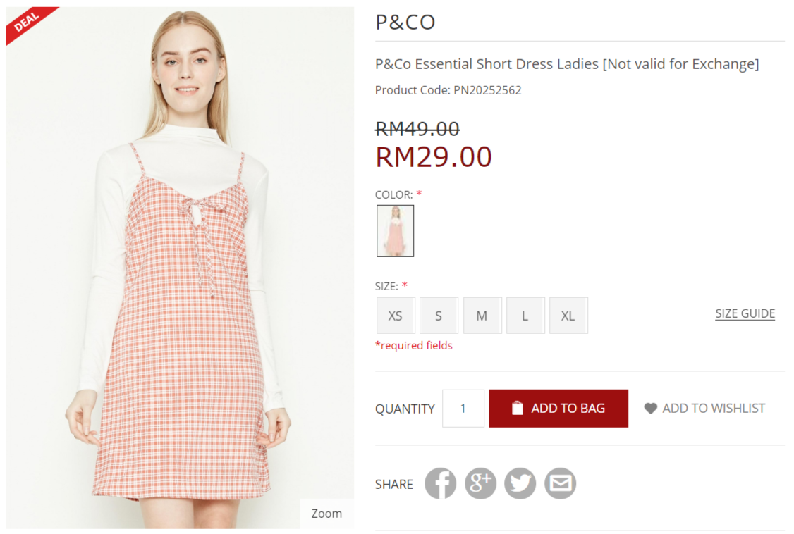 ▼ P&Co Essential Short Dress Ladies —— 只需RM29