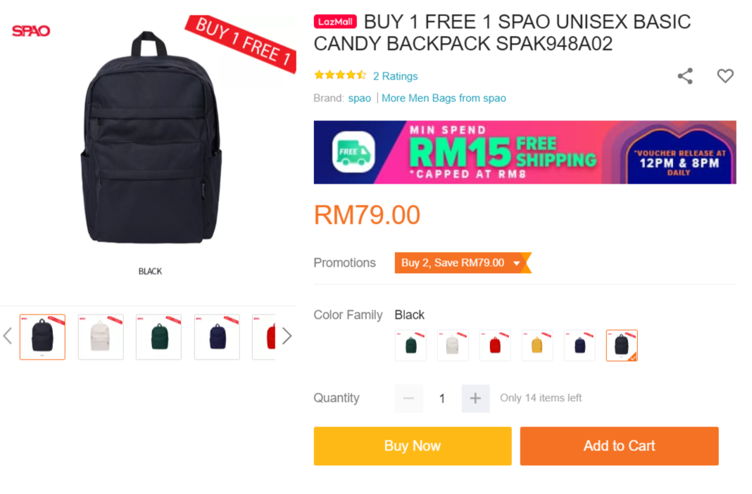 ▼ SPAO Unisex Basic Candy Backpack【买一送一】  —— 只需RM79 ;相等于一个背包只需RM39.50