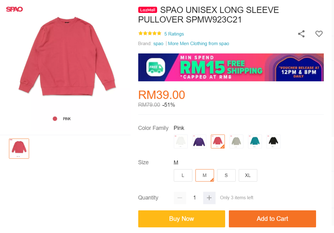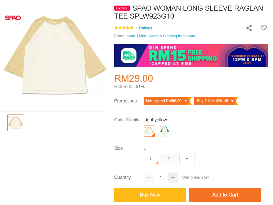 促销网站:Lazada 的 SPAO 官方网【点击这里