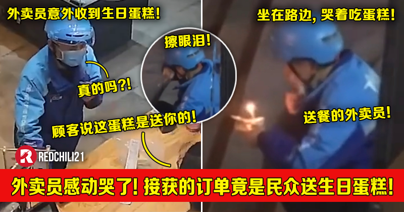 外卖员感动哭了!接获的订单竟是民众送他的生日蛋糕!独自坐在路旁哭着吃蛋糕!