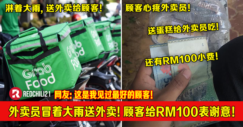 外卖员冒着大雨送外卖!暖心顾客给RM100小费表谢意!网友:这是我见过最好的顾客!