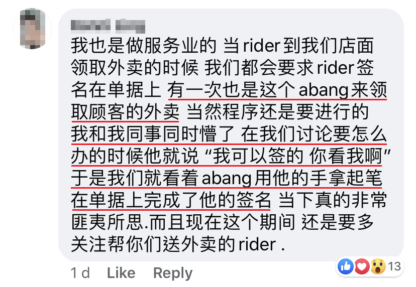 近日一名大马男子在面子书PO文,订购外卖的时候遇到一名双手断掌的送餐员,让他非常惊讶又感动!该帖文在几天内获得了上万人的按赞!