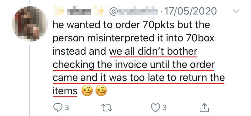 ▼ 原PO解释道:「我们在购买饼干的同时也买了其它货品,所以就没仔细检查订单,而且它是自动付款的。」