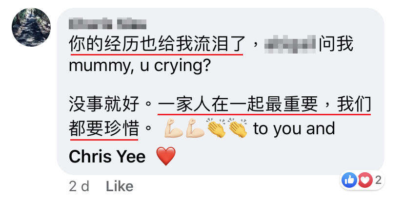 早上诊所又来电了!当我接听时我的手已经在抖了,幸运的是医生告诉我说我家人全部negative!实在值得安慰,我家人并没有因为我而受感染。我知道我家人在知道我受感染后都为我落泪,我的爸爸、妈妈、姐姐、哥哥,当然还有我老婆和孩子。