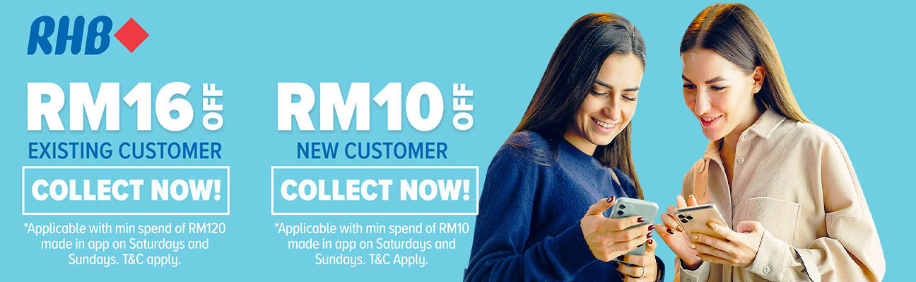 - 新用户必须消费 RM10 或以上,可折扣 RM10 ;旧用户必须消费RM150或以上,可折扣20%(最高折扣于RM30)