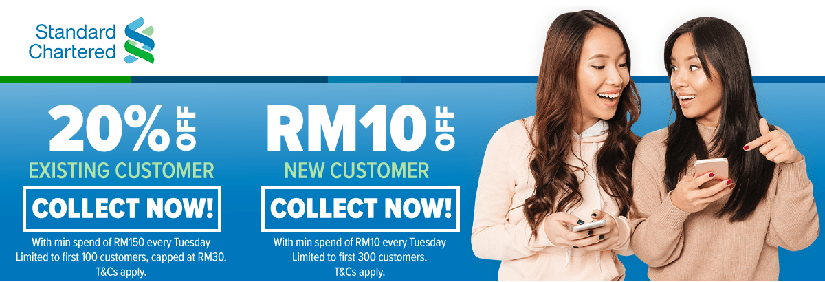 ii)Standard Chatered 折扣高达20%(最高可折扣RM30)