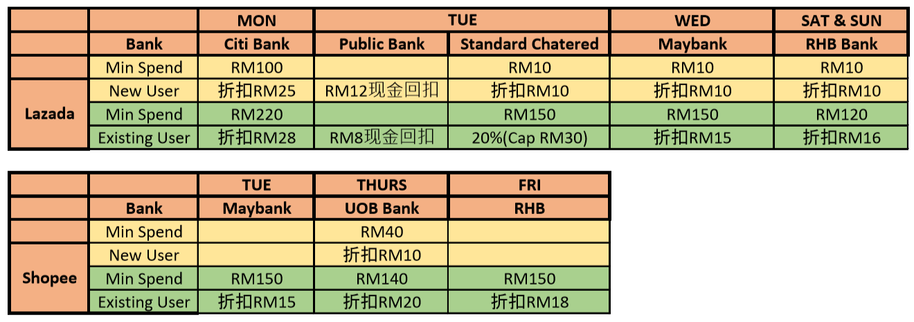 其实大马2家著名购物平台 Shopee 和 Lazada 每日都会推出折扣优惠给消费者们!并且折扣高达20%!或者可折扣于RM30!