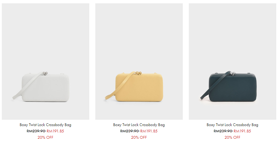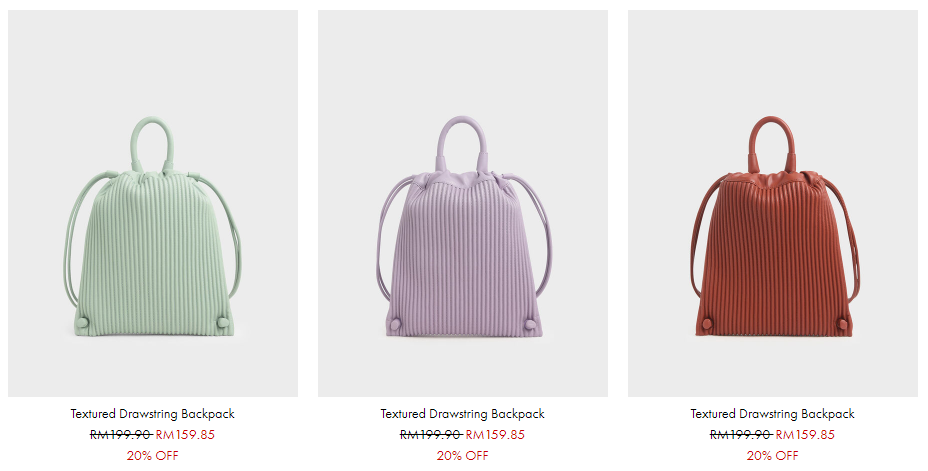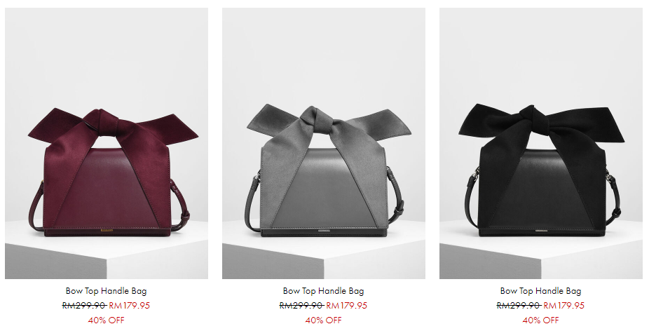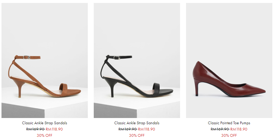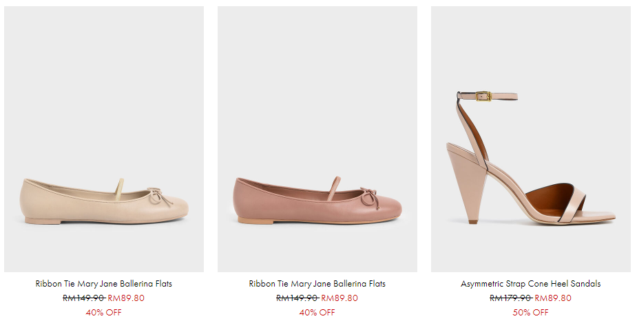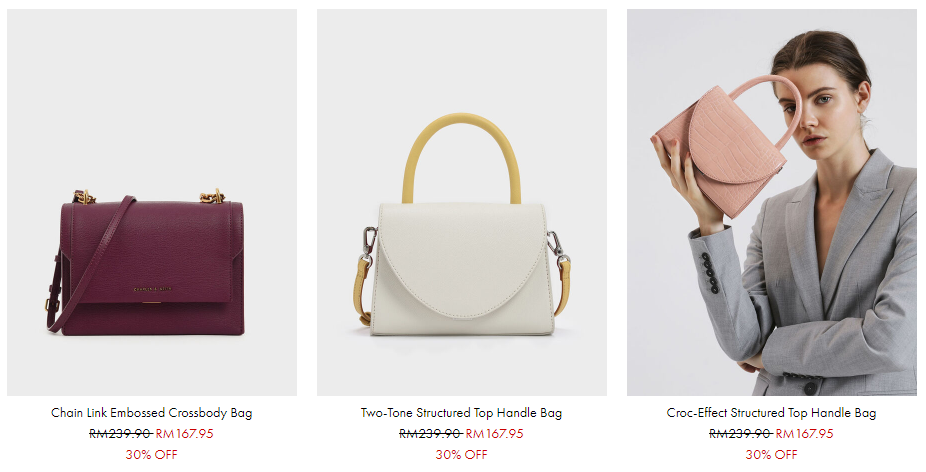 这次优惠是在 Charles & Keith 官方网站推出清货大促销!优惠中的商品,包括:鞋子、包包及配饰等等!甚至新款式的包包及鞋子都获得折扣优惠!折扣高达70%!