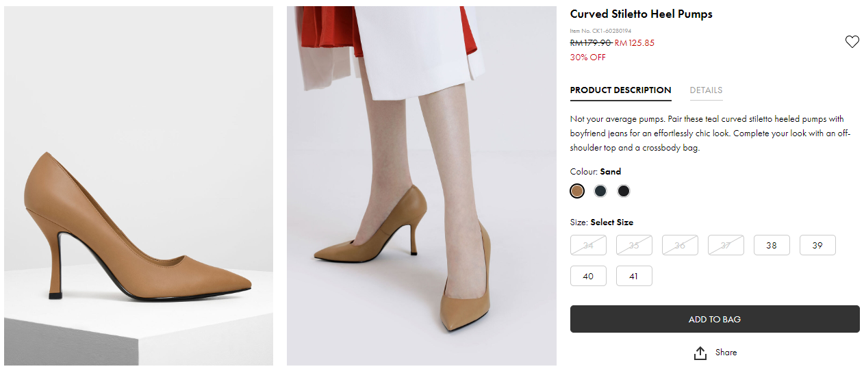 ▼ Curved Stiletto Heel Pumps —— 折扣30%后只需RM125.85 (原价:RM179.90)